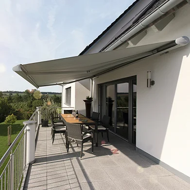 - Angenehmer Sichtschutz in Kombination mit Seiten-Markise oder Volant-Rollo